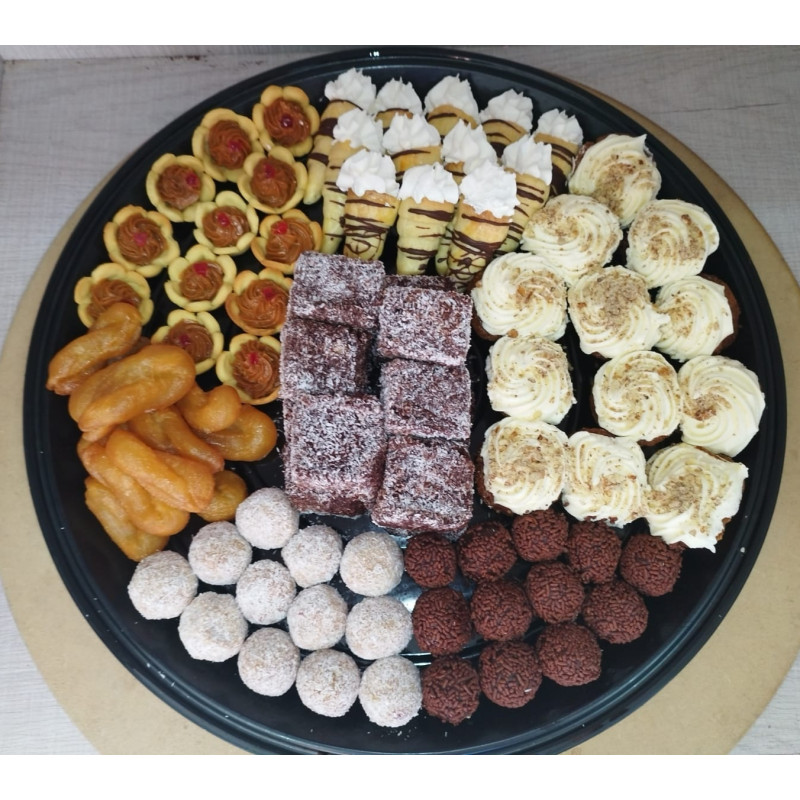 This platter is perfect for celebrations, dessert tables, meetings, or family gatherings. To ensure variety and consistency, customers may select a maximum of 5 different products per platter, with each product supplied in its standard package quantity.